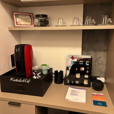 Conforto Total: Equipado com cantinho do café, frigobar e micro-ondas. Além de contar com WC social.